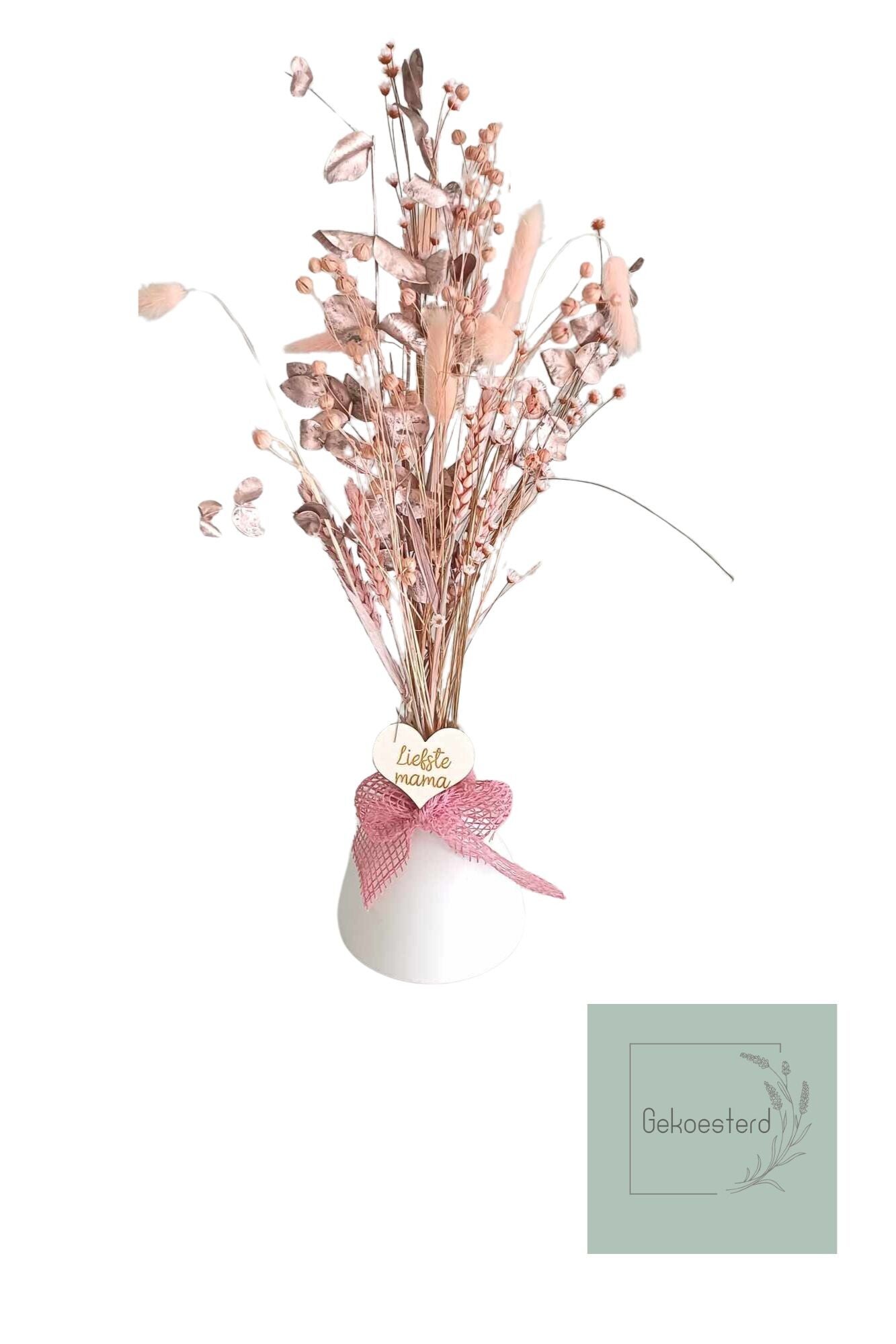 Gevulde vaas met droogbloemen.Het hart kan voorzien worden met gravering naar keuze.