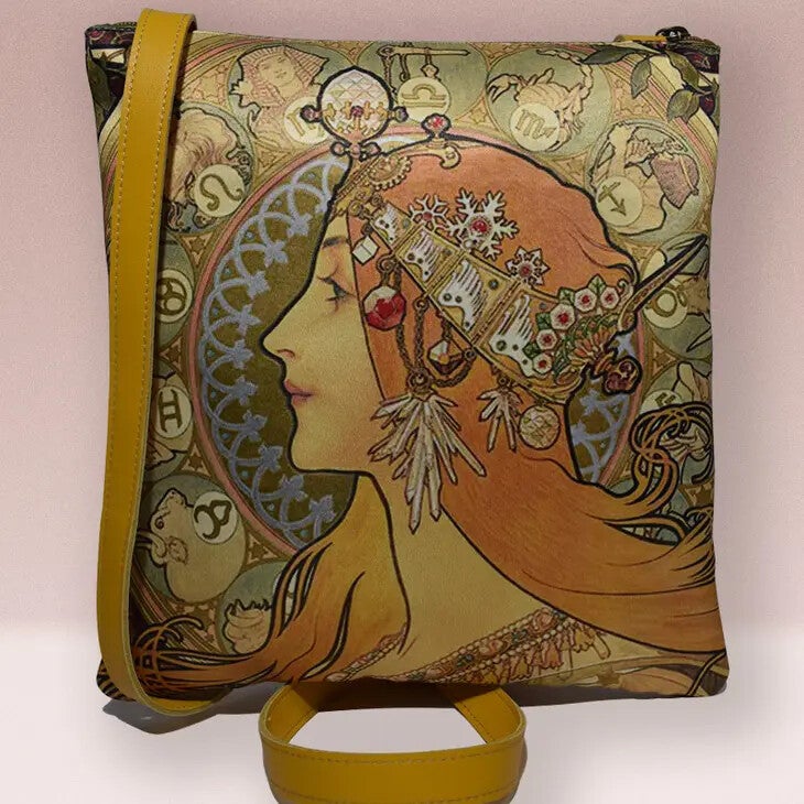 Originele handtas met afdruk kunstwerk Mucha